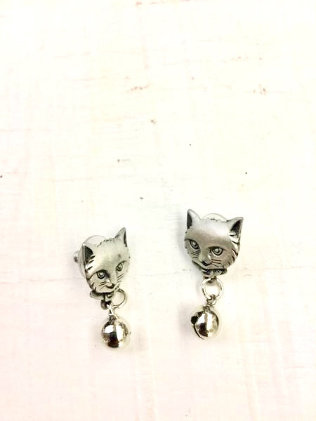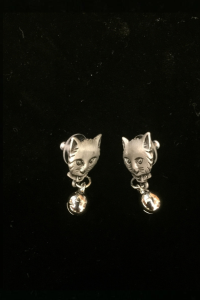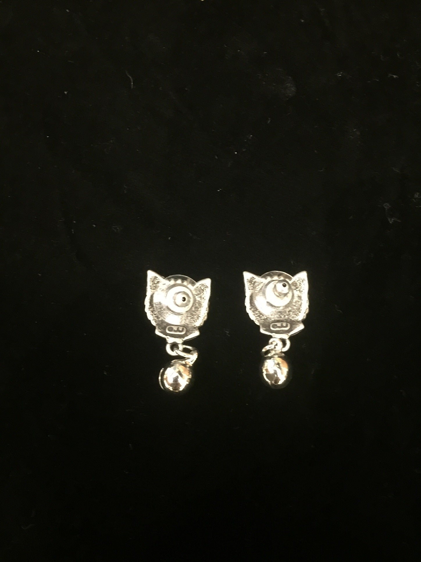 可愛的鈴鐺貓咪耳環(耳針),最特別是貓咪下面綁的小鈴鐺,輕輕搖擺,有著小小的鈴聲。