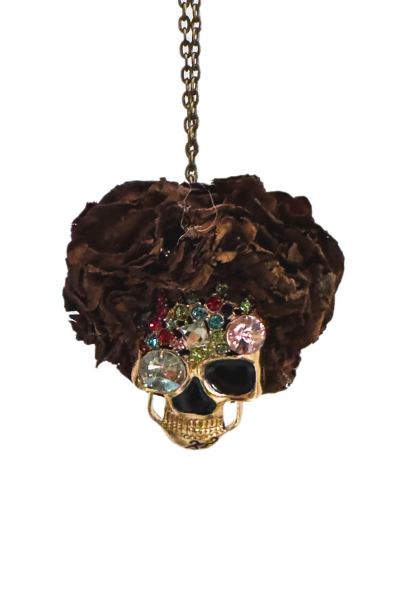 落地山茶花能給予重生的生命,以你鍾愛的精油和香水,噴灑、或是幾滴在立體嘻哈骷髏的乾燥山茶花頭髮間,配上古銅色珠鍊,擴香於您行走之間。
