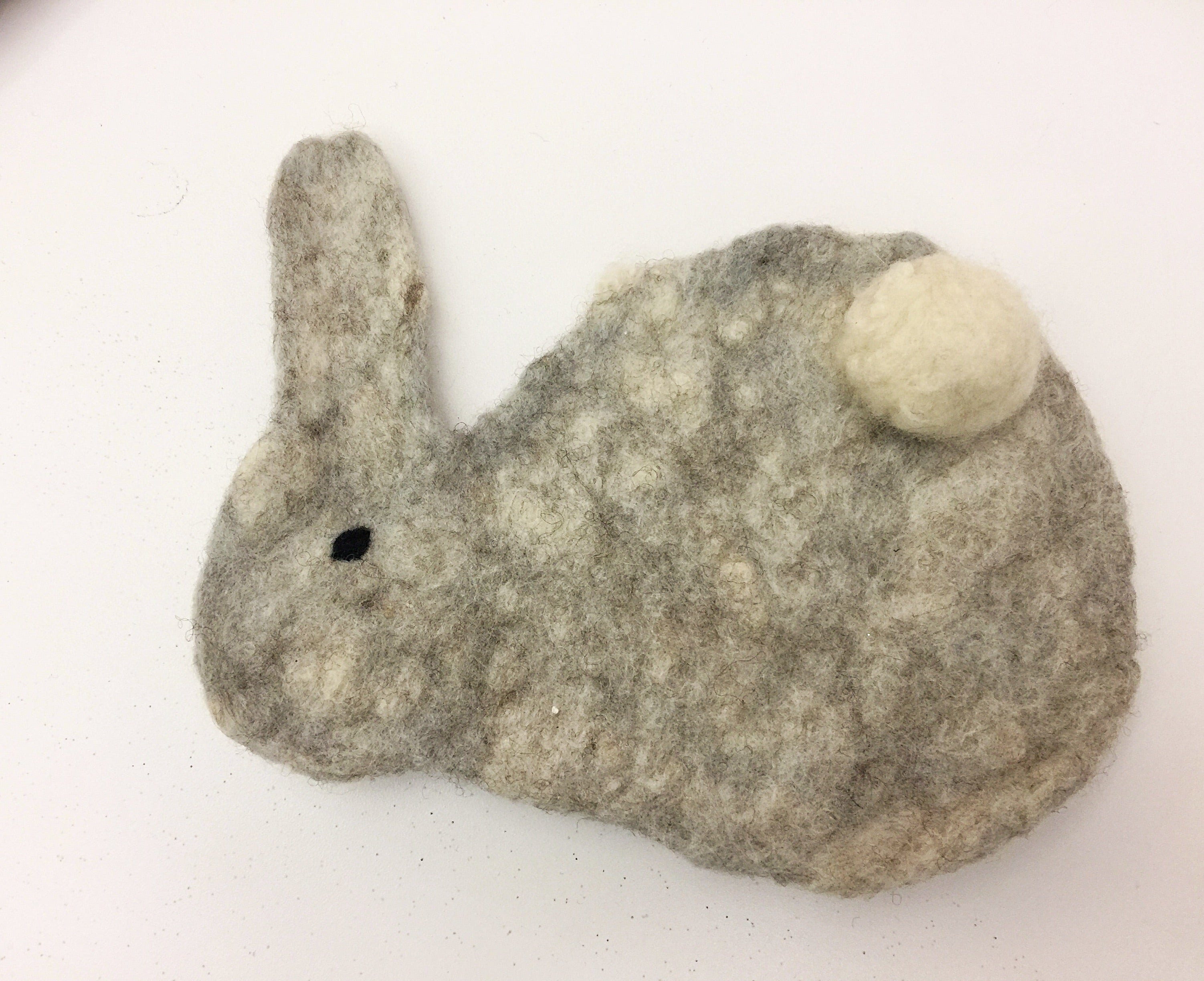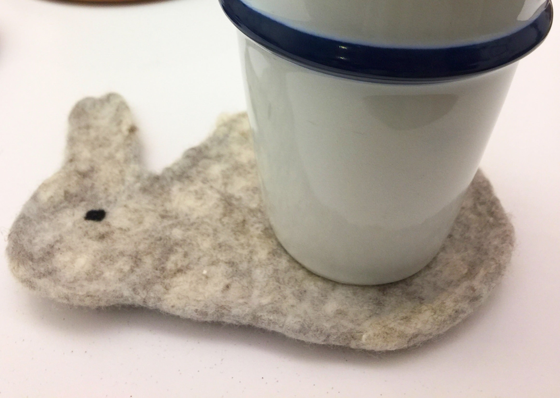 下手上手的羊毛氈生活用品系列,可愛的白兔加上圓滾滾的尾巴,是桌上可愛的杯墊。